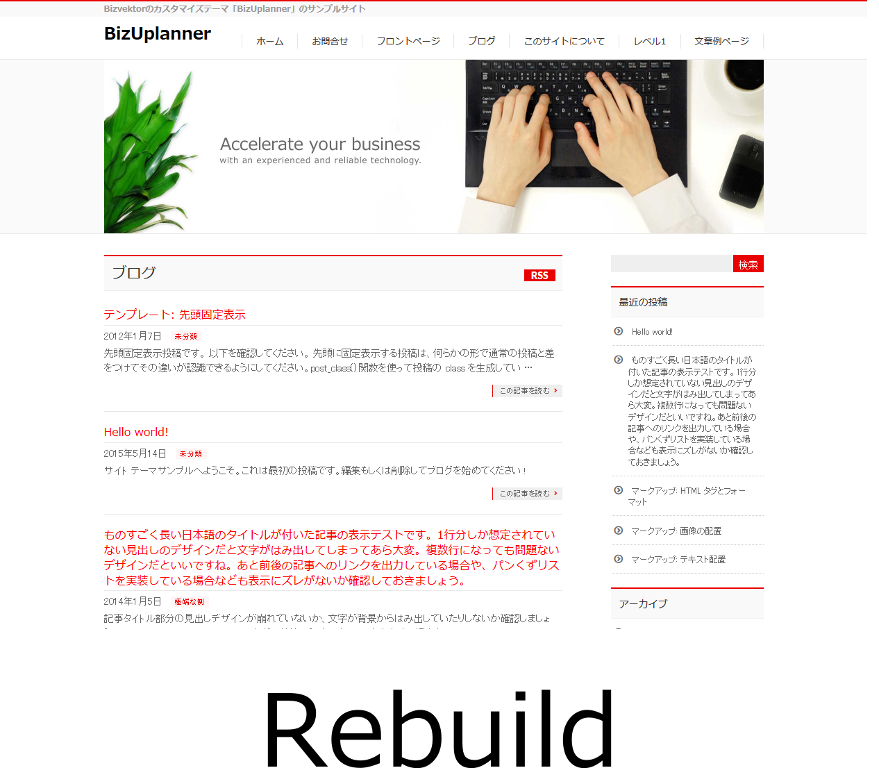 「BizUplanner」はWordPressテーマBizvektorをカスタマイズしたテーマです。